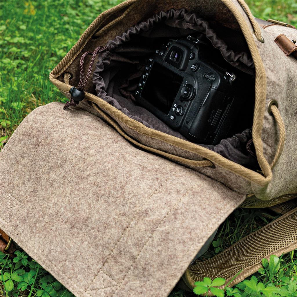 Außenmaß Länge max. ca.37 cmAußenmaß Breite ca.23 cmAußenmaß Höhe ca.50 cmGewicht ca.1250 gLieferumfang1x Rucksack, 1x Fotoeinsatz, 1x Staub-& RegenschutzcoverTaschenfassungsvermögen Kamera1 Systemkamera, persönliche GegenständeTaschenfassungsvermögen Objektive3 ObjektiveTaschenfassungsvermögen Blitz1 SystemblitzgerätGrößeLTaschenartFotorucksackTablet-/Laptopfach15''Trageriemen ArtGepolsterte Rucksackriemen & BauchgurtAußenmaterial50% Wolle, 50% Polyester & Echt-Leder ApplikationenInnenmaß Länge max.32 cmInnenmaß Breite max. ca.19 cmInnenmaß Höhe max.48 cmFassungsvermögen ca.29 LiterInnenmaße Fotoabteil ca. [cm]30 x 17 x 14Extra Staub-& RegenschutzcoverJaHinweis LieferumfangAbgebildetes Zubehör, das nicht im Lieferumfang aufgeführt ist, nicht inklusive.HinweisWir behalten uns vor, technische und/oder gestalterische Änderungen ohne Ankündigung vorzunehmen.