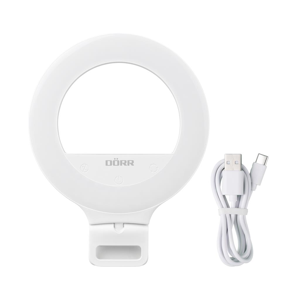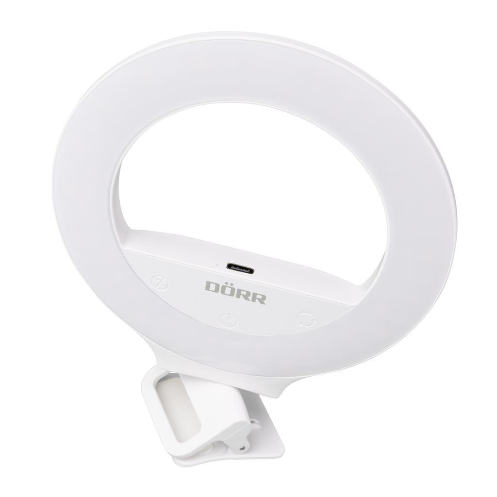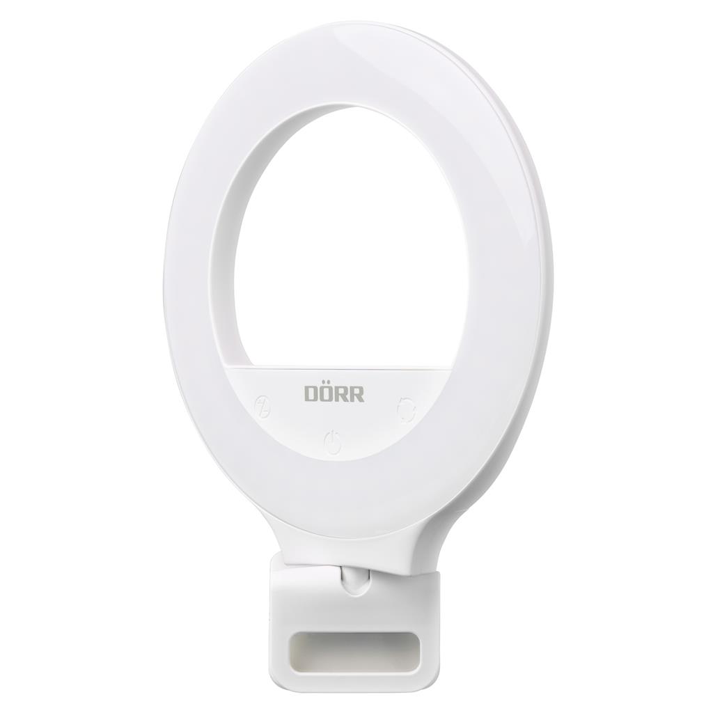 The DÖRR Business LED Selfie Ring Light SLR-13 raises your social media appearances, video conferences, online meetings, FaceTime chats or webinars to a professional level. Emphasize the appealing content of your photo and video messages with optimal lighting. Thanks to the large diameter of the ring light, you can achieve a pleasantly soft and flattering illumination without annoying shadows. With the extra slim and high-quality housing, the ring light fits into your laptop bag.
