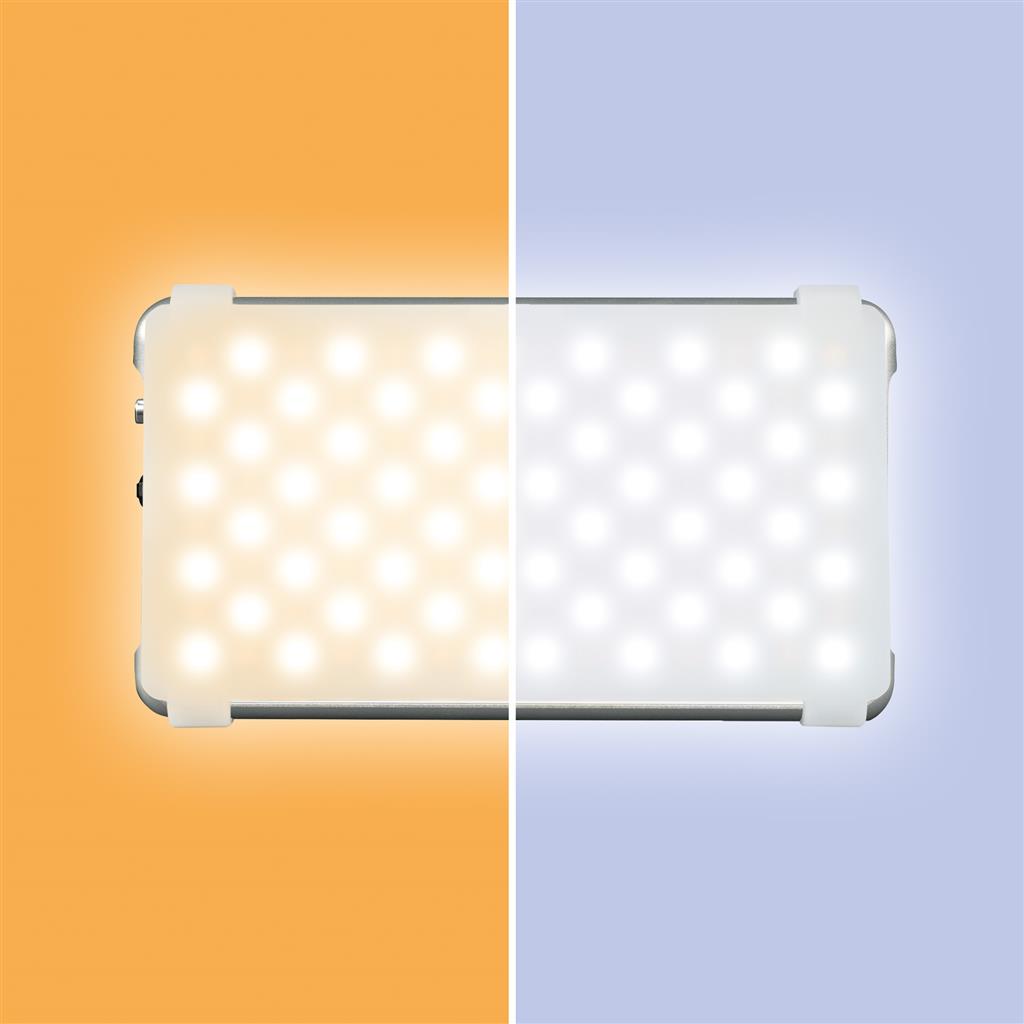 With a total of 112 high-power Bi-Color LEDs (56x warm white + 56x cold white) the video light provides a strong light output. The brightness can be dimmed from 5 - 100% in order to adapt the lighting optimally to the photographic and cinematic tasks.