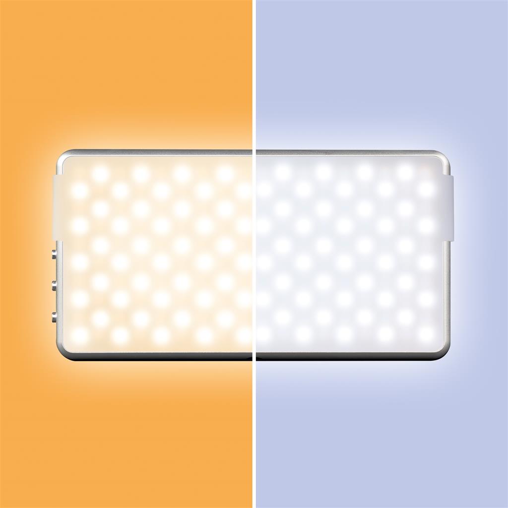 With a total of 180 high-power Bi-Color LEDs (90x warm white + 90x cold white) the video light provides a strong light output. The brightness can be dimmed from 5 - 100% in order to adapt the lighting optimally to the photographic and cinematic tasks.