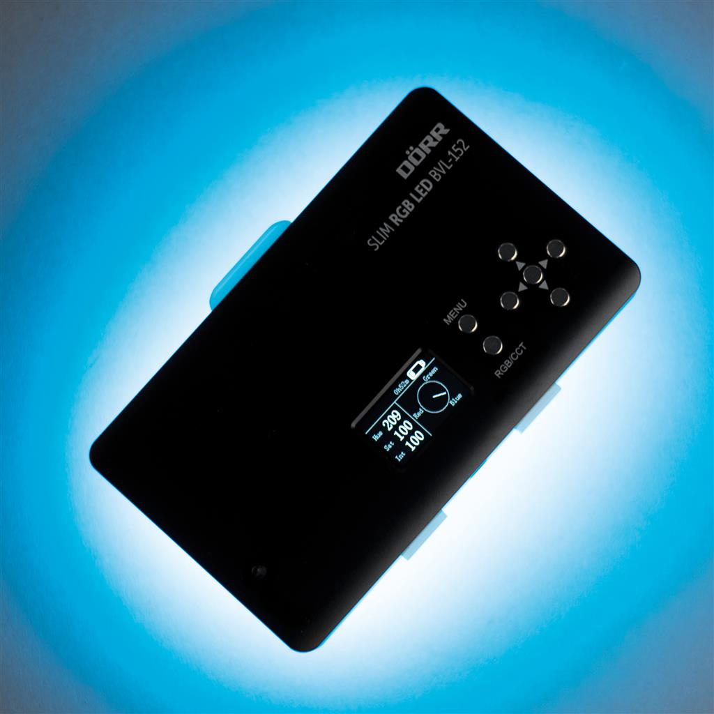 The especially flat DÖRR Slim RGB LED Video Light BVL-152 with its 12 watts power is well suited for photo shoots as well as video recording.