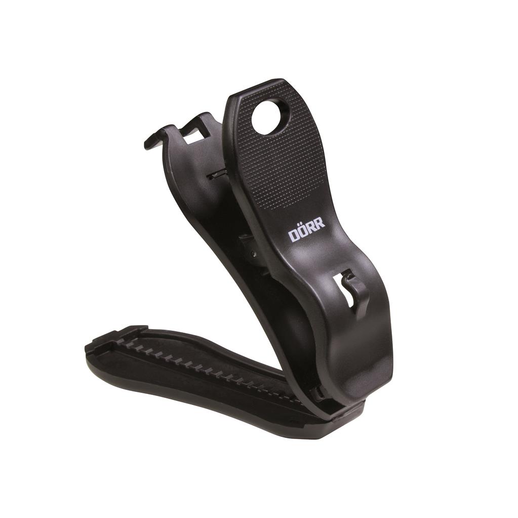 Kamera oder Fototasche befestigen und den Objektivdeckel festklammern.