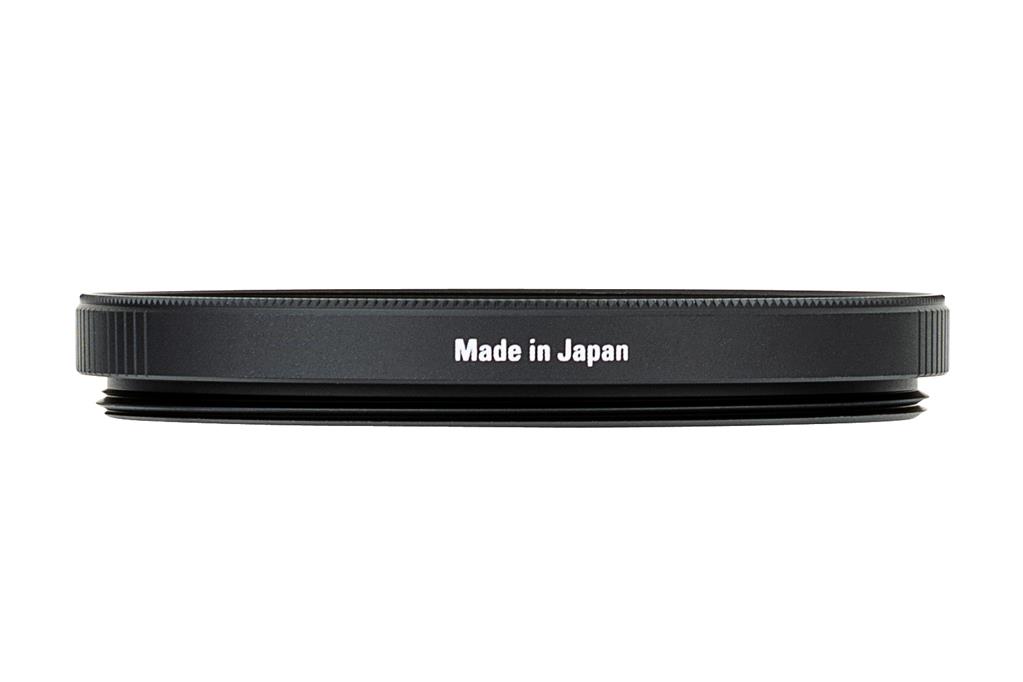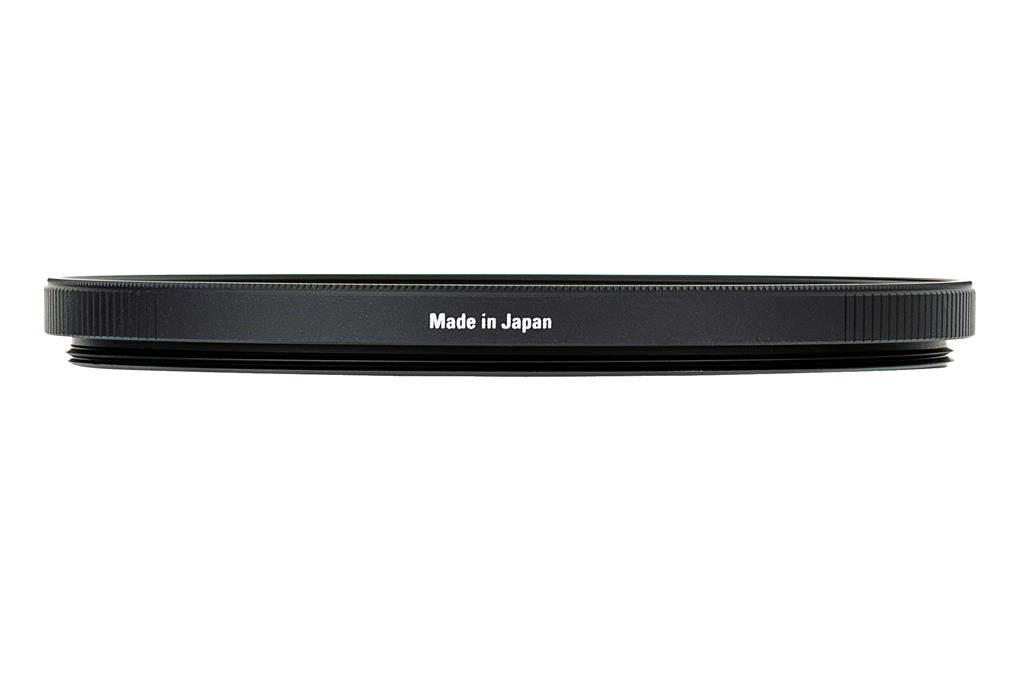 The ultra slim frame avoids vignetting. The matt black metal frame and black glass edges reduce reflections. The filters are fitted with a front thread to attach further accessories.