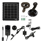 With the supplied metal bracket and the supplied screws and dowels, the solar panel can be firmly screwed for example to a wall. Or you may use the supplied mounting strap to attach the holder variably to a tree. Adjust the solar panel towards the sun with the movable joints of the bracket.