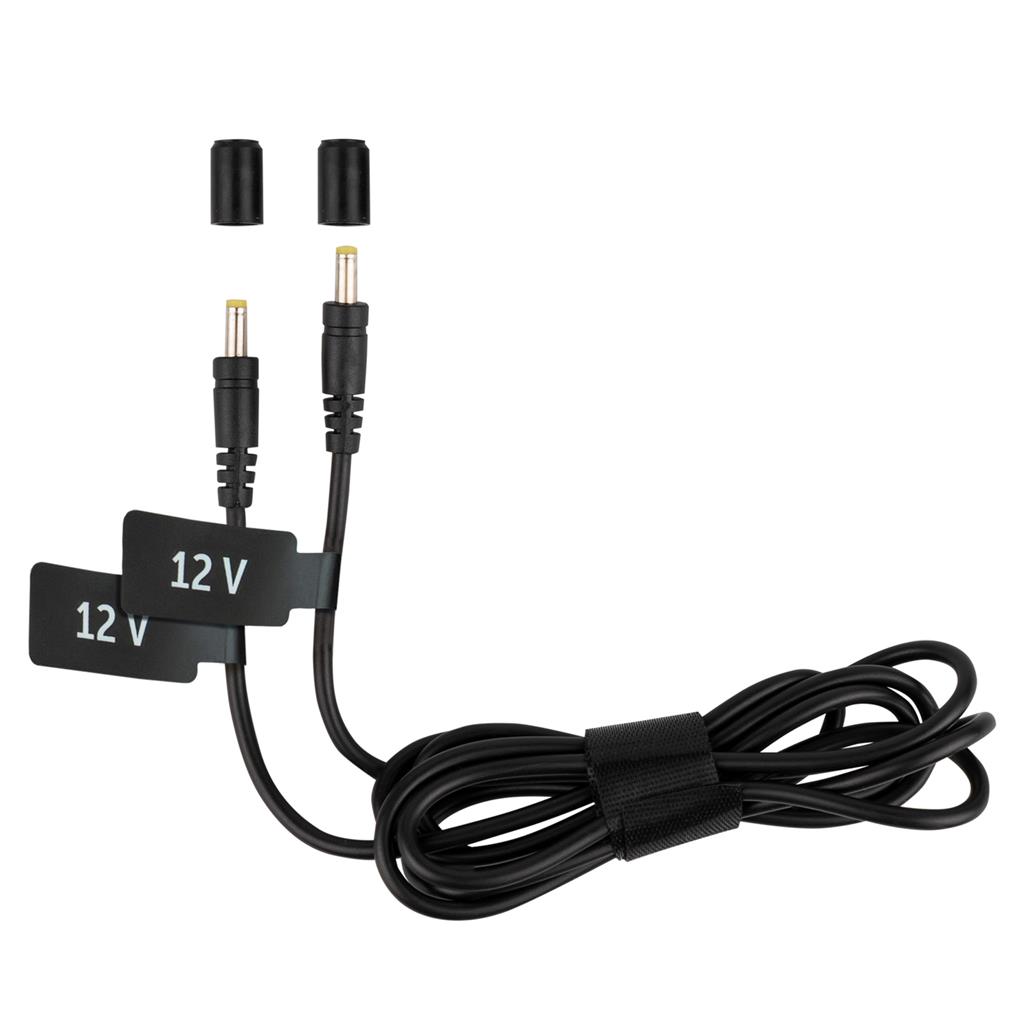 The solar panel comes with two connection cables. Use the 12V cable to connect the solar panel to devices and cameras with 12V operating voltage. The special connection cable with an integrated voltage converter from 12V to 6V is used together with devices and cameras with an operating voltage of 6V. Both cables are each equipped with barrel connectors 4.0 x 1.7 x 10 mm.