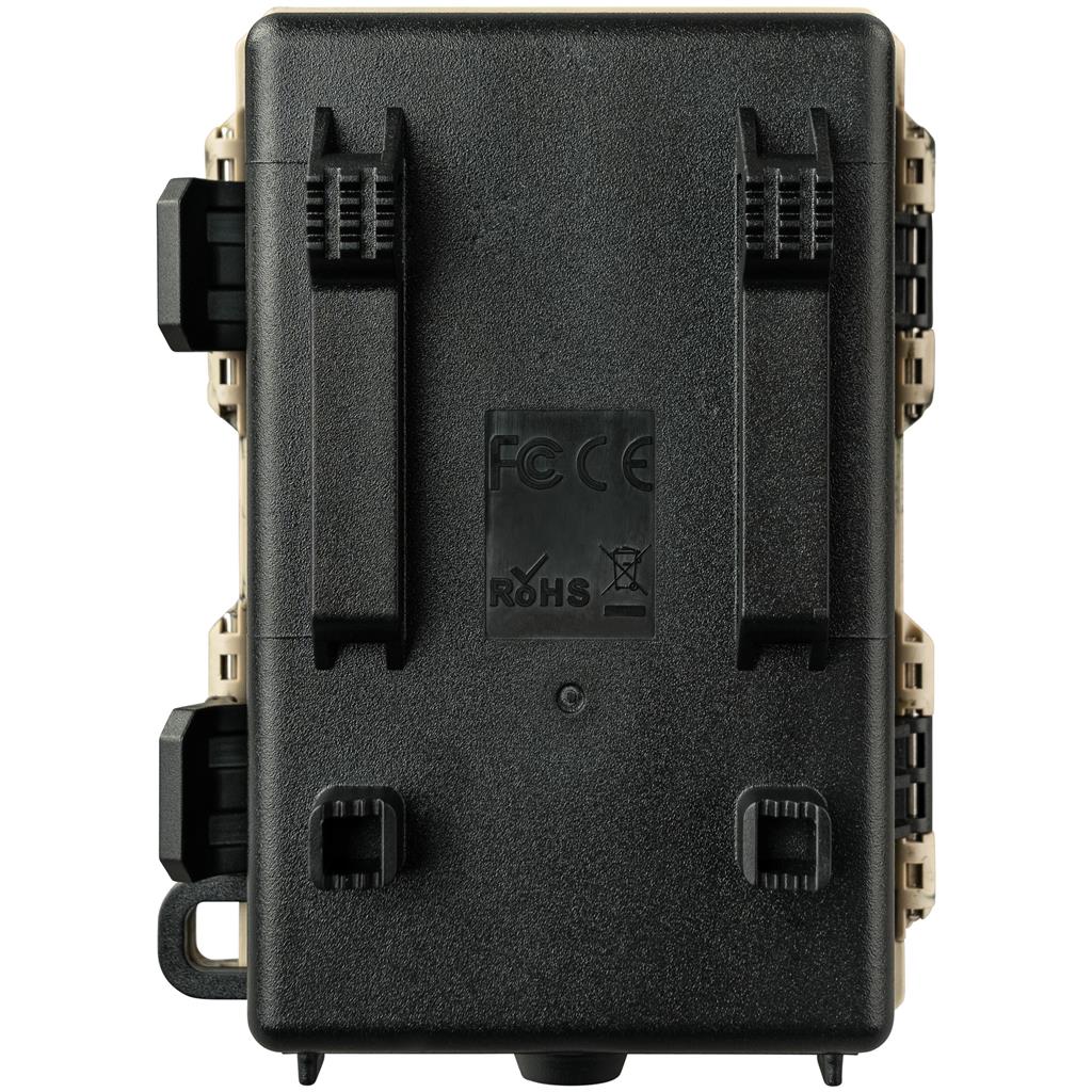 The camera requires 8 AA LR6 1.5V alkaline batteries for operation (not included). The runtime in standby mode is up to 8 months (depending on camera settings, temperature, battery quality, etc.). You can find suitable batteries and inexpensive value packs here. Besides operation with conventional AA batteries, the camera allows the use of an external rechargeable battery together with a battery cable. You can find everything you need for an alternative power supply in our shop: