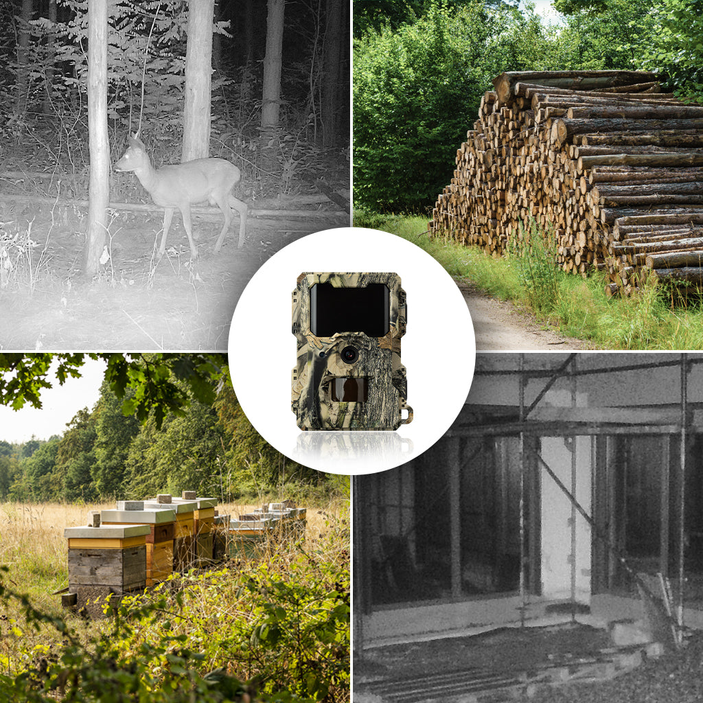 Thanks to the PIR sensor with a trigger time of just 0.5 seconds, you are guaranteed not to miss a thing. The sensitivity of the motion detector can be adjusted in 9 levels to detect even minimal movements and temperature differences. It is also possible to pause the motion detector as required. With a detection range of 20 metres and a picture angle of 60°, the trail cam is guaranteed not to miss a thing.