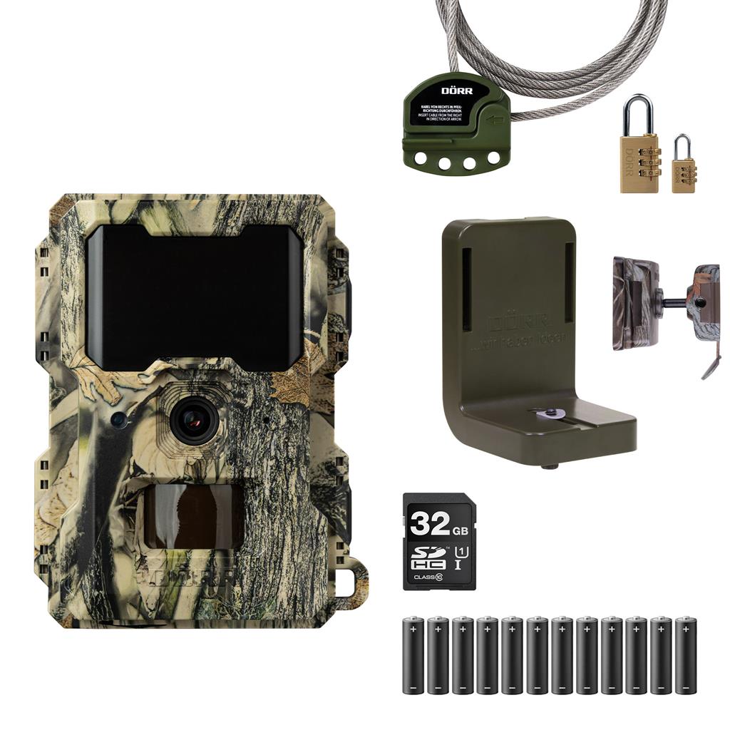 Maximum Flash Range Approx.20 mCombined Photo and Video FunctionYesAudio RecordingYesCompatible with Dörr Mounting System (Art. No. 204490)Yes, with Uni 1 Adapter (Art. No. 204495, optional)Mobile Image TransmissionNoMobile Video TransmissionNoLED TypeInvisible Black Vision Infrared LEDs, 940nmMemory CardSD/SDHC 8-32GB; SDXC 64 - max. 128GB see user manual (not included)Burst Mode (Images per Trigger)1-3Video Length5-59 sec.Detection Range Motion Sensor Approx.20m / 60°Field of View Approx.60°Time Slots per Day2Image PlaybackNoExternal Battery ConnectionYesTripod Thread 1/4YesProtection ClassIP66Power Supply8x AA LR6 1.5V Alkaline Batteries (not included)Operating Temperature Approx.-20°C to +55°CStorage Temperature Approx. [°C]-25°C to +60°CHumidity Approx. [%]5% - 90%Scope of Delivery1x camera, 1x mounting strap, 1x quick start guideOperating VoltageDC 12VColorCamouflageDigital Image FormatJPEGDigital Video FormatMP4Power Supply IncludedNoNumber of LEDs60Dimensions Approx. [cm]9.3 x 12.5 x 7.5USB TypeUSB-CPIR Sensor Reaction Time Approx.0.5 sec.Power Consumption Approx.In operation 38-321mA during the day, 45-722mA at night / Standby 0.16mAWeight Without Batteries Approx.256 gNote on Scope of DeliveryAccessories shown but not listed in the scope of delivery are not included.Timestamp on ImageCamera name, battery status, temperature (°F/°C), moon phase, date, timeRecording OptionsPhoto / Video with Sound / Photo+Video with SoundImage Sensor3 MP CMOS SensorVideo ResolutionFull HD 1080P (1920x1080) / HD 720P (1280x720)LensF=2.0/60°Display1.4'' LCD TFT Color DisplayPIR Sensor Delay5 seconds to 24 hoursTime-Lapse FunctionYesPIR Sensor Sensitivity1 - 9 LevelsMenu LanguageDE, GB, FR, ES, IT, CZ, DK, FI, HU, NL, SEPassword ProtectionYesStandby Mode Duration Approx.Up to 8 months with 8x AA batteriesDisplay PlaybackSettings onlyImage Resolution [MP]3MP real / 5MP interpolatedNoteWe reserve the right to make technical and/or design changes without notice.Aspect Ratio16:9