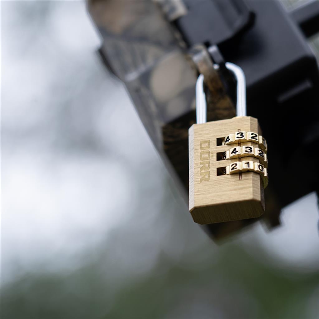 To prevent your memory card from being stolen or unauthorised persons from changing your camera settings, the camera can be locked with an optional U-lock. You can find a suitable DÖRR combination lock here. To secure your camera against theft, there are special eyelets on the back of the housing through which you can thread an optional cable lock. Suitable cable locks can be found here.