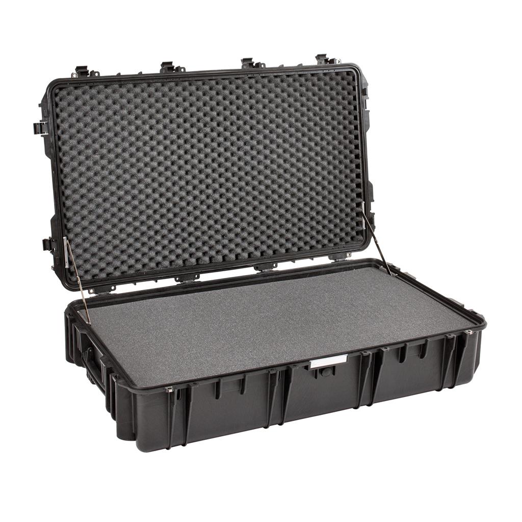 The case bottom is equipped with pre-cut cube foam that allows you to adapt the foam quickly and easily to your equipment. Underneath the cube foam is a smooth foam bottom piece. Please refer to the specifications for the exact number of foam layers.