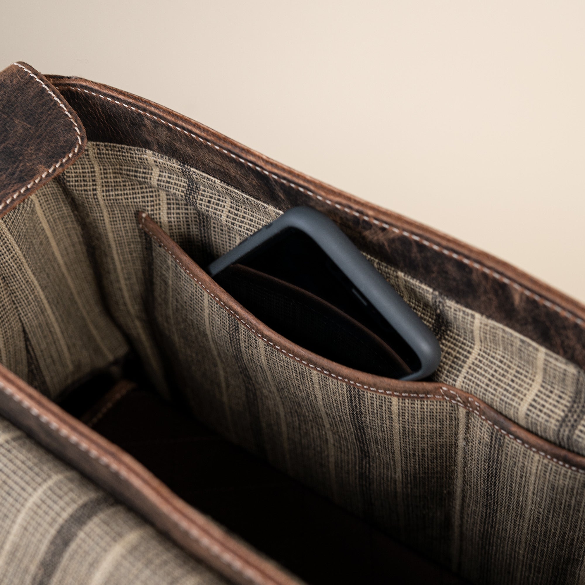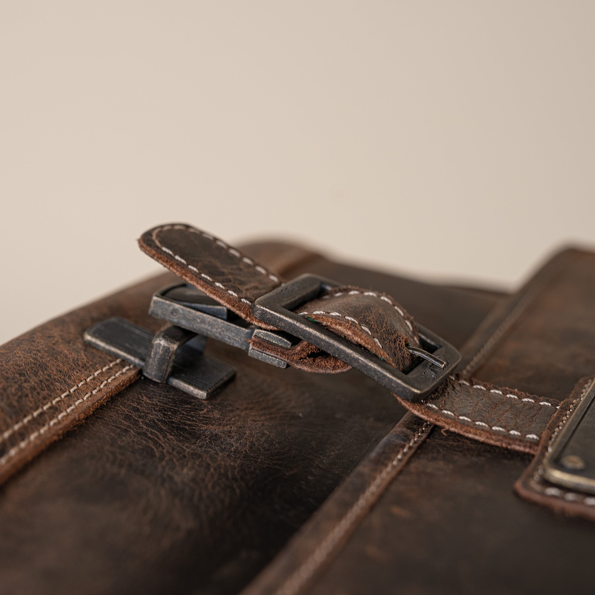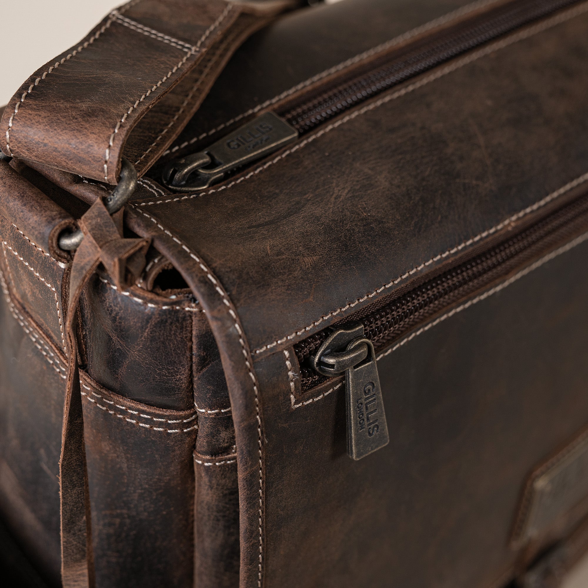 Your bag is made of timeless, modern brown coloured leather, that convinces by its vintage character and exceptional durability. Cream-coloured decorative seams as well as antique finish metal fittings complete the stylish bag design. GILLIS® genuine leather is a natural product. You acquire an exclusive and unique piece that will accompany you for lifetime and will become even more individual during use.