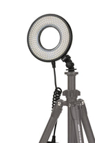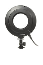 Die Farbtemperatur der LEDs ist für eine besonders natürliche Farbwiedergabe auf Tageslicht abgestimmt. Die Leuchtfläche wurde bewusst großflächig konstruiert. Das sorgt für ein angenehm weiches Licht. Die Lichtleistung kann mit dem Dimmer jedem Motiv stufenlos angepasst werden. Für eine plastischere Motivdarstellung kann das Ringlicht auch seitlich von der Kamera platziert werden. Mit dem eingebauten ¼“ Gewinde und dem mitgelieferten Neiger kann es dazu auf jedem Tisch- oder Fotostativ montiert werden.