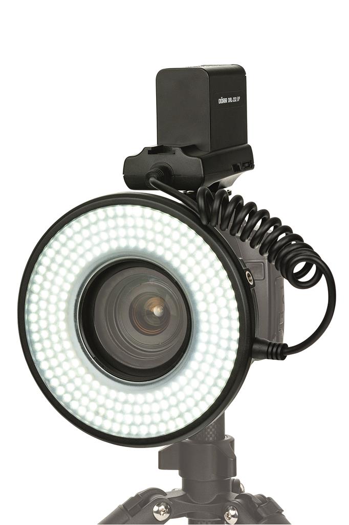 Das ultrahelle DÖRR LED Ringlicht DRL-232 mit stufenloser Helligkeitsregelung ist ideal geeignet, um den Nah- und Makrobereich optimal auszuleuchten. Die Ringleuchte wird einfach am Filtergewinde des Objektivs befestigt und sorgt durch seine ringförmige Anordnung der LEDs um das Objektiv herum für eine schattenfreie Ausleuchtung des Motivs.