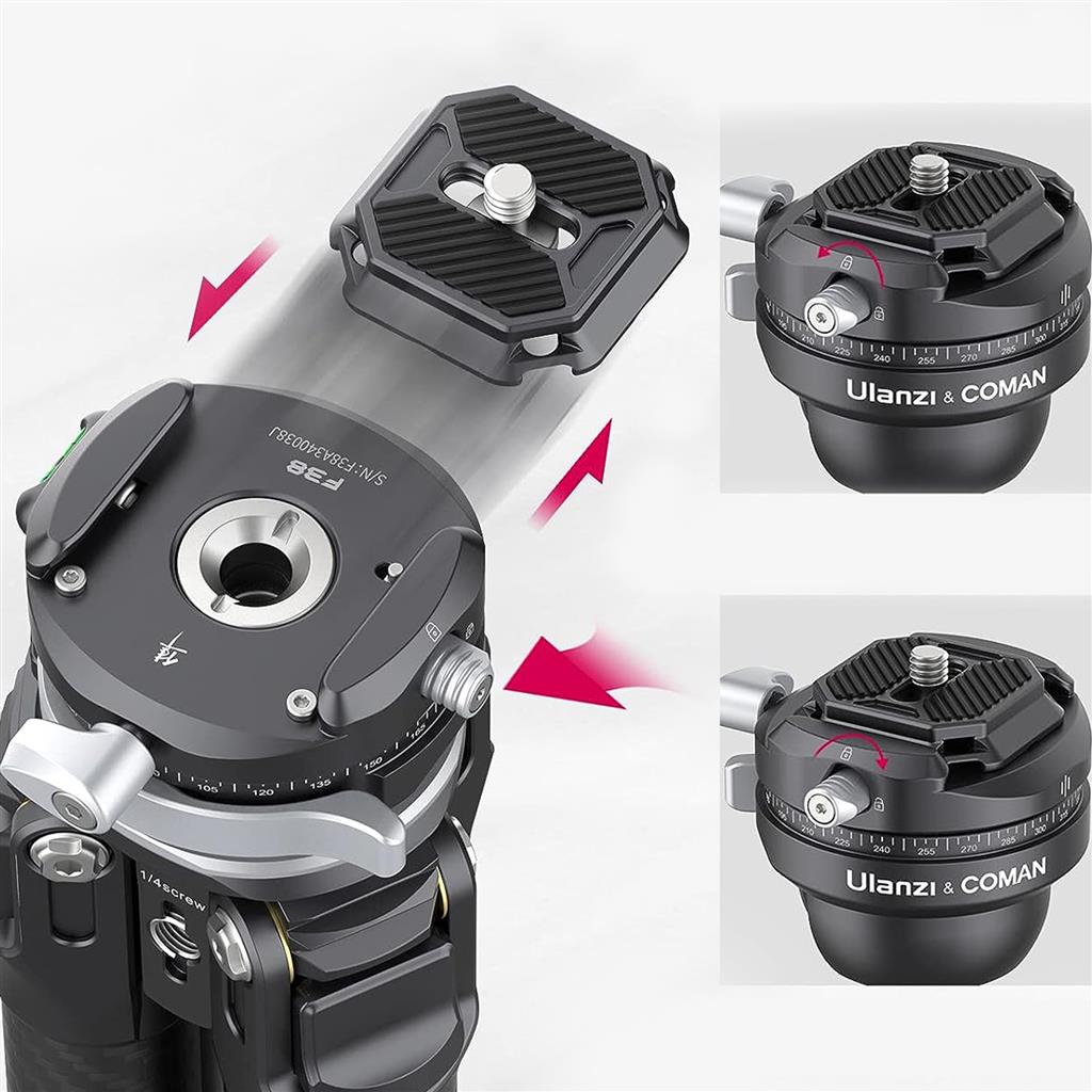 Inklusive F38 Schnellwechselplatte 1/4-Zoll, Arca-Swiss kompatibel.