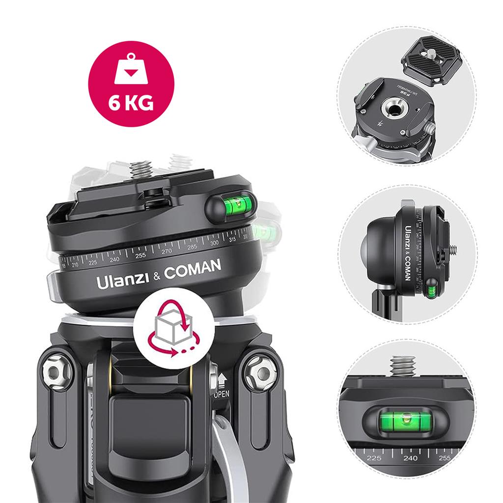 Kugelkopf mit Schnellspanner, Anti-Touch-Knöpfe, Wasserwaage, 360° Panoramaeinstellung. 6 kg Tragfähigkeit.